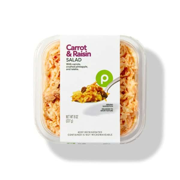 Carrots, Pineapple (with Pineapple Juice And Citric Acid), Mayonnaise (soybean Oil, Egg Yolks With Salt, Water, Vinegar, Sugar, Corn Syrup, Salt, Spice, On On Powder, Garlic Powder, Calcium Disodium Edta [preservative]), Raisins (raisins, Sunflower And/or Palm Oil), Sugar, Seasoning Mix (sugar, Guar And Xanthan Gum, Citric Acid, Potassium Sorbate [preservative], Sodium Ascorbate).