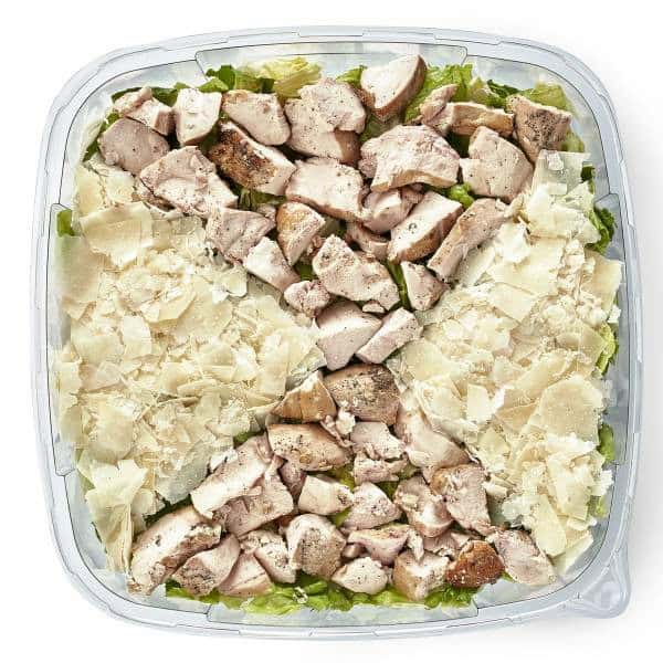 Romaine lettuce blend, grilled chicken, Parmesan cheese, and croutons. With Caesar dressing.