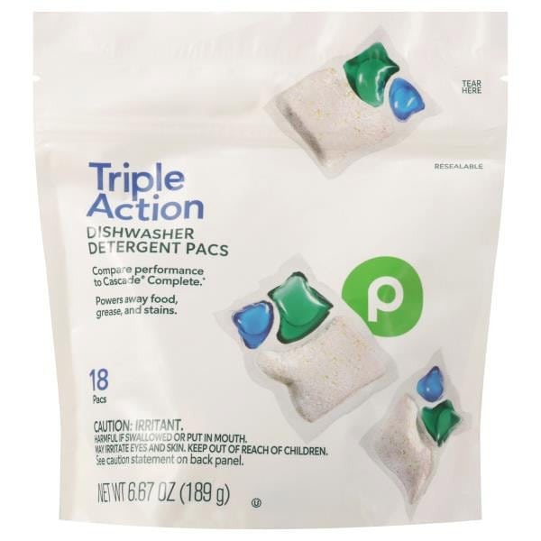 Usage: 1 pac = 1 load. Directions For Use: 1. Handle with dry hands; pacs dissolve upon contact with water. Do not unwrap, puncture, or pull apart pacs that are stuck together. 2. Remove single pac from package and place in main dispenser. Close dispenser lid. 3. Close dishwasher door, set cycle, and press ”Start”. 4. Reseal package after each use. 5. Ensure items are dishwasher-safe and follow manufacturer’s instructions. To avoid damage, separate stainless steel from silverware.