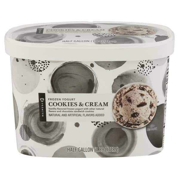 Vanilla-flavored frozen yogurt with other natural flavors and chocolate sandwich cookies. Natural and artificial flavors added. Publix Guarantee: Complete satisfaction or your money back. publix.com. Scan for more information.