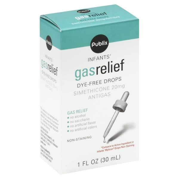 Other Information: Do not use if printed seal under cap is torn or missing. Store at room temperature. Do not freeze. Misc: Simethicone 20 mg. Antigas. Gas relief. No alcohol. No saccharin. No artificial flavor. No artificial colors. Non-staining. Compare to active ingredient in Infants’ Mylicon Drops Non-Staining (This product is not manufactured or distributed by Johnson & Johnson Merck Consumer Pharmaceuticals Co., distributor of Infants’ Mylicon Drops Non-Staining). publix.com. Publix Guarantee: Complete satisfaction.