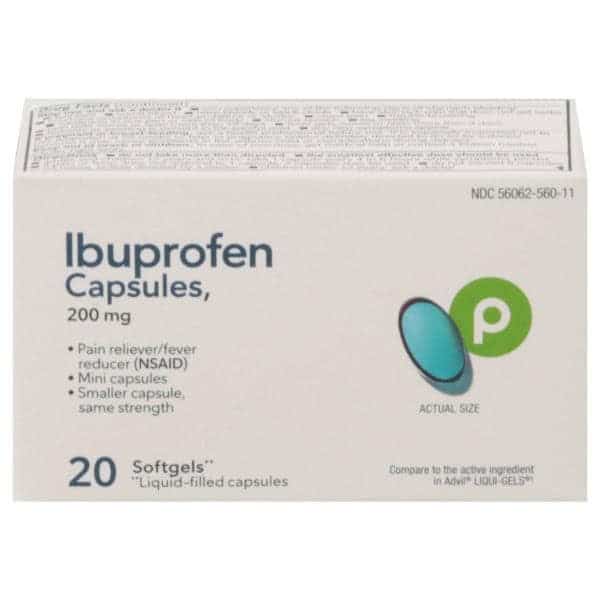 Warnings Allergy alert: Ibuprofen may cause a severe allergic reaction, especially in people allergic to aspirin. Symptoms may include: hives facial swelling asthma (wheezing) shock skin reddening rash blisters. If an allergic reaction occurs, stop use and seek medical help right away. Stomach bleeding warning: This product contains an NSAID, which may cause severe stomach bleeding. The chance is higher if you are age 60 or older have had stomach ulcers or bleeding problems take a blood thinning (anticoagulant) or steroid drug m take other drugs containing prescription or nonprescription NSAIDs [aspirin, ibuprofen, naproxen, or others] have 3 or more alcoholic drinks every day while using this product take more or for a longer time than directed Heart attack and stroke warning: NSAIDs, except aspirin, increase the risk of heart attack, heart failure, and stroke. These can be fatal. The risk is higher if you use more than directed or for longer than directed. Do not use if you have ever had an allergic reaction to any other pain reliever/fever reducer right before or after heart surgery Ask a doctor before use if stomach bleeding warning applies to you you have problems or serious side effects from taking pain relievers or fever reducers you have a history of stomach problems, such as heartburn you have high blood pressure, heart disease, liver cirrhosis, kidney disease, asthma, or had a stroke you are taking a diuretic Ask a doctor or pharmacist before use if you are under a doctor’s care for any serious condition taking aspirin for heart attack or stroke, because ibuprofen may decrease this benefit of aspirin taking any other drug When using this product a take with food or milk if stomach upset occurs