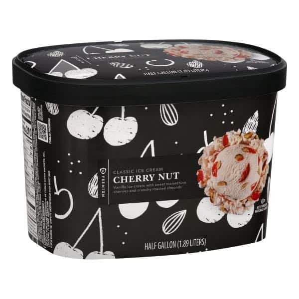 Vanilla ice cream with sweet maraschino cherries and crunchy roasted almonds. Natural flavor. Publix Guarantee: Complete satisfaction or your money back. publix.com. Scan for more information.