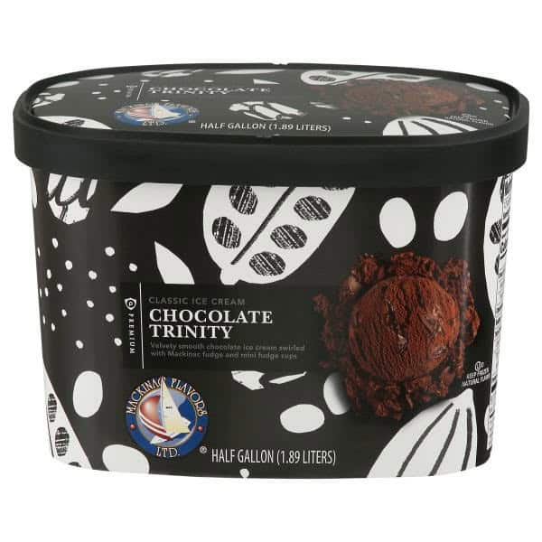 Velvety smooth chocolate ice cream swirled with Mackinac fudge and mini fudge cups. Natural flavor. Publix Guarantee: Complete satisfaction or your money back. publix.com. Scan for more information.