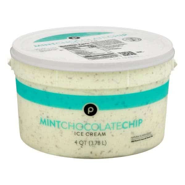 Milkfat and Nonfat Milk, Corn Syrup, Chocolate Chips (Sugar, Coconut Oil, Cocoa [Processed with Alkali], Chocolate Liquor, Soy Lecithin, Vanilla, Salt), Sugar, High Fructose Corn Syrup, Whey, Mono & Diglycerides, Locust Bean Gum, Guar Gum, Calcium Sulfate, Polysorbate 80, Carrageenan, Natural Peppermint Flavor, Yellow 5, Blue 1, Dipotassium Phosphate, Sodium Citrate.