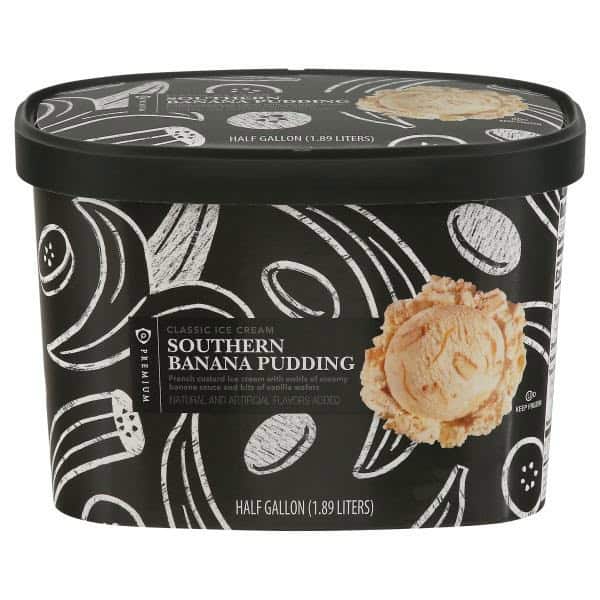 Milk, Cream, Sugar, Banana Variegate (Sugar, Banana Puree, Water, Cream, Modified Food Starch [Corn], Nonfat Dry Milk, Natural Flavor, Malic Acid, Potassium Sorbate [Preservative], Annatto [Color]), Vanilla Wafers (Enriched Flour [Wheat Flour, Niacin, Reduced Iron, Thiamine Mononitrate, Riboflavin, Folic Acid], Sugar, Soybean and Palm Oil with TBHQ for Freshness, Salt, High Fructose Corn Syrup, Leavening [Baking Soda, Monocalcium Phosphate], Butter [Cream, Salt], Soy Lecithin, Natural and Artificial Vanilla Flavor), French Custard Base (Corn Syrup, High Fructose Corn Syrup, Egg Yolks, Sugar, Water, Natural Flavor, Sodium Benzoate and Potassium Sorbate [Preservatives], Annatto and Turmeric Extractives [Color]), Corn Syrup, Carob Bean Gum and Guar Gum, Natural Banana Flavor.