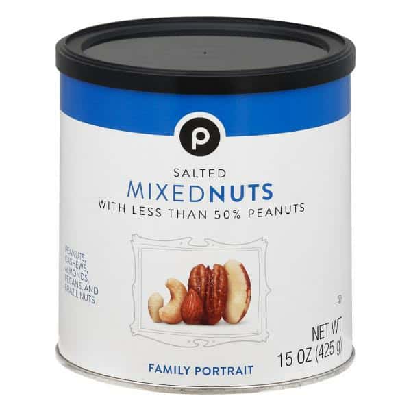 Peanuts, cashews, almonds, pecans, and Brazil nuts. Family portrait. Publix Guarantee: Complete satisfaction or your money back. publix.com. Scan for more information. Contains Product From: Cashews – India, Brazil, Vietnam, Indonesia, Ghana, Ivory Coast. Pecans – USA, Mexico. Brazil Nuts – Bolivia, Peru.