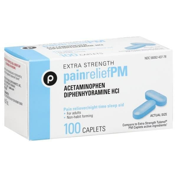 Misc: Pain Reliever/Nighttime Sleep Aid: For adults; Non-habit forming. Compare to Extra Strength Tylenol PM Caplets active ingredients (This product is not manufactured or distributed by the owner of the registered trademark Tylenol). Publix Guarantee: Complete satisfaction or your money back. publix.com.