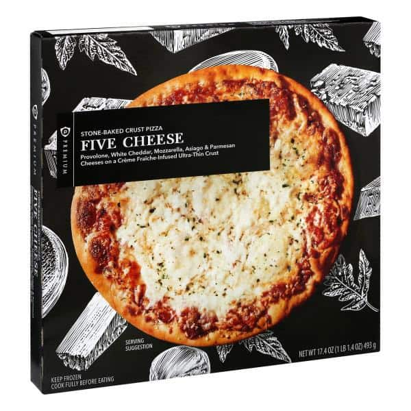 Provolone, white cheddar, mozzarella, asiago & parmesan cheeses on a creme fraiche-infused ultra-thin crust. Contains bioengineered food ingredient. Publix Guarantee: Complete satisfaction or your money back. publix.com. Scan for more information.
