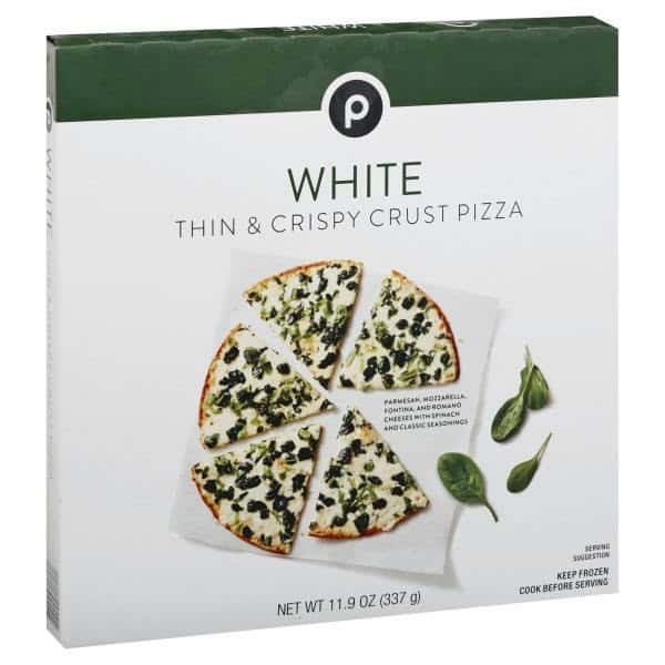 Crust (Flour [Wheat, Malted Barley], Water, Contains 2% or Less of: Soybean Oil, Sugar, Yeast, Salt, Cultured Wheat Starch, Citric Acid, L-Cysteine [Dough Conditioner], Soy Lecithin [Processing Aid]), Low Moisture Mozzarella Cheese (Pasteurized Milk, Cheese Cultures, Salt, Enzymes), Low Moisture Part-Skim Mozzarella Cheese (Pasteurized Part-Skim Milk, Cheese Cultures, Salt, Enzymes), Spinach, Fontina Cheese (Pasteurized Milk, Cheese Cultures, Salt, Enzymes), Olive Oil, Grated Parmesan Cheese (Parmesan Cheese (Pasteurized Part-Skim Milk, Cheese Cultures, Salt, Enzymes), Cellulose [Anticaking]), Grated Romano Cheese (Romano Cheese Made from Cow’s Milk (Pasteurized Milk, Cheese Cultures, Salt, Enzymes), Cellulose [Anticaking]), Salt, Garlic Powder.