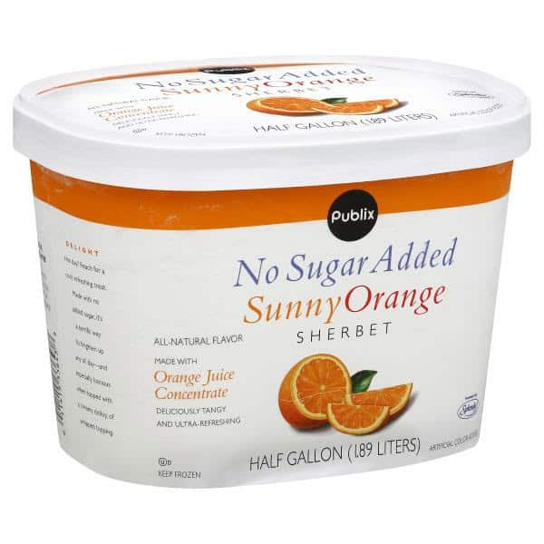 Water, Maltitol (Excess Consumption May Have a Laxative Effect), Polydextrose, Soluble Corn Fiber, Maltodextrin, Milkfat and Nonfat Milk, Sorbitol (Excess Consumption May Have a Laxative Effect), Orange Base (Water, Concentrated Orange Juice, Orange Pulp, Natural Flavors, Citric Acid, Yellow 6, Polysorbate 80, Sodium Benzoate & Potassium Sorbate [Preservatives]), Whey, Citric Acid, Pectin, Mono and Diglycerides, Guar Gum, Hydroxypropyl Methylcellulose, Locust Bean Gum, Sucralose, Polysorbate 80.