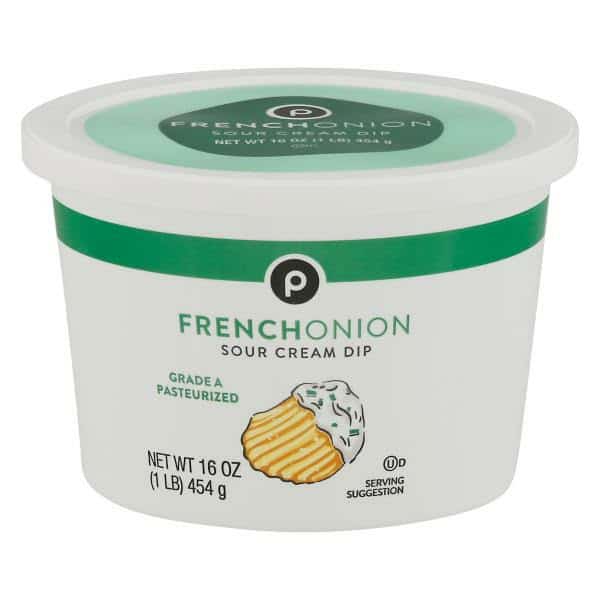 Cultured Pasteurized Grade A Cream and Milk, Grade A Whey, French Onion Seasoning (Dehydrated Onion, Salt, Sugar, Hydrolyzed Vegetable Protein [Corn], Spices, Dehydrated Parsley, Potassium Sorbate [Preservative], Canola Oil, Yeast Extract, Natural Flavor), Modified Food Starch (Corn), Sodium Phosphate, Guar Gum, Carrageenan, Calcium Sulfate, Locust Bean Gum.
