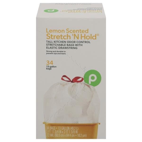 Publix Stretch ‘n Hold Tall Kitchen Odor Control Stretchable Bags With Elastic Drawstring Lemon