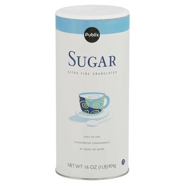 Easy-to-use. Countertop convenience. At home or work. Life is sweet when you’ve got Publix sugar. And this handy flip-top canister makes our sugar so convenient to use: to sprinkle on your cereal, or to stir in your coffee or tea. Try a bit on your grapefruit or sliced strawberries. Add a touch to your tomato sauce or salad dressing to balance out the acidity. Or make that classically comforting treat: cinnamon toast (simply sprinkle warm buttered toast with a little cinnamon and sugar). Just flip open the lid and enjoy the natural sweetness that only sugar can offer. Publix Guarantee: Complete satisfaction or your money back. www.publix.com. Scan for more information,