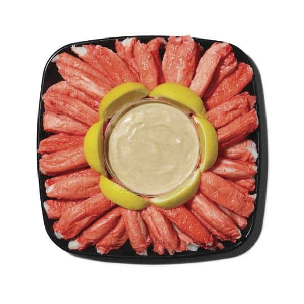 A platter of delicious ready-to-eat surimi, served with mustard dipping sauce.