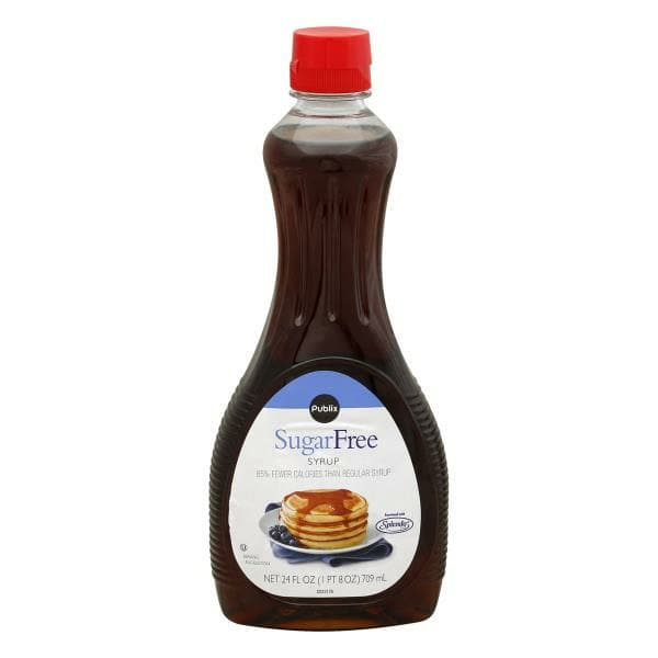 Calories Per Serving: Sugar-free syrup;15. 85% fewer calories than regular syrup. Sweetened with Splenda. Publix Guarantee: Complete satisfaction or your money back. publix.com.