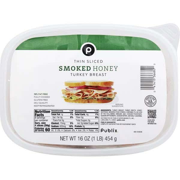Gluten free. 98% fat free. Fully cooked. Deli quality. Publix Guarantee: Complete satisfaction or your money back. US inspected and passed by Department of Agriculture. publix.com. Scan here for more information.