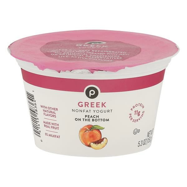 Strained Yogurt (Grade A Pasteurized Nonfat Milk and Cream, Live Active Yogurt Cultures [L. Bulgaricus, S. Thermophilus, L. Acidophilus, Bifidus, L. Casei]), Peach Fruit Preparation (Peaches, Cane Sugar, Water, Cornstarch, Lemon Juice Concentrate, Natural Flavor, Xanthan Gum).