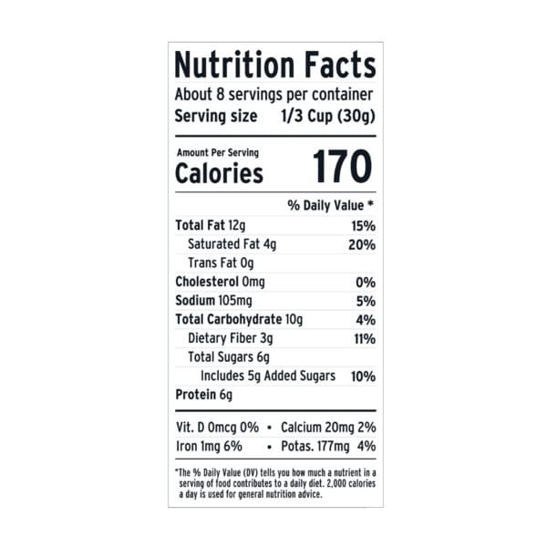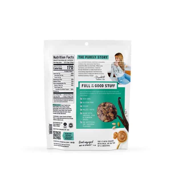 Purely Elizabeth Grain Free Vanilla Almond Butter Granola is made with creamy almond butter and hints of vanilla. Our keto nut granola recipe has nuts, superfood seeds and coconut sugar for a crunchy texture and delicious salty sweet taste. It is all the flavor you crave, free of oats and grains! Enjoy our grain free granola with milk, fresh fruit and yogurt, on oatmeal or on its own as a keto snack.