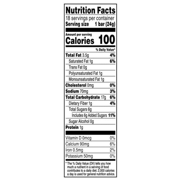 Granola (whole Grain Oats, Sugar, Brown Rice Crisp (whole Grain Brown Rice Flour, Sugar, Salt), Whole Grain Wheat, Soybean Oil, Dried Coconut, Whole Wheat Flour, Molasses, Baking Soda, Soy Lecithin, Nonfat Dry Milk), Glucose Syrup (sourced From Wheat), Chocolate Chips (sugar, Chocolate Liquor, Cocoa Butter, Soy Lecithin, Natural Flavor), Brown Rice Crisp (whole Grain Brown Rice Flour, Sugar, Salt