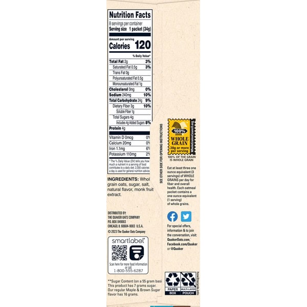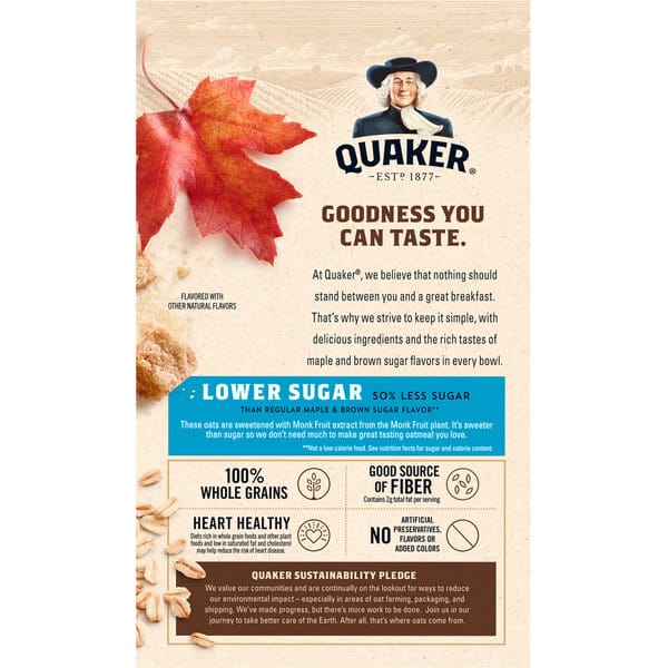 • 50% less sugar than regular Maple & Brown Sugar flavor