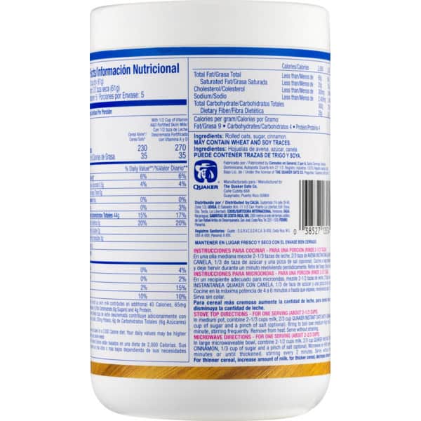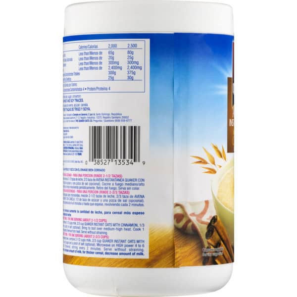 In large microwaveable bowl, combine 2-1/2 cups milk, 2/3 cup Quaker instant oats with cinnamon, 1/3 cup of sugar and a pinch of salt (optional), microwave on high power 4 to 6 minutes or until thickened, stirring every 2 minutes. Serve without straining.