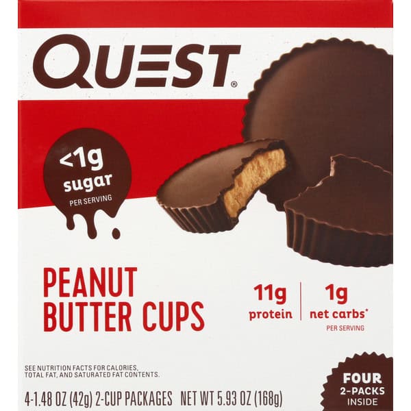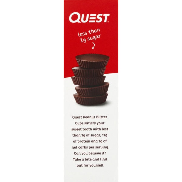 Quest Peanut Butter Cups satisfy your sweet tooth with less than 1g of sugar, 11g of protein and 1g of net carbs per serving. Can you believe it? Take a bite and find out for yourself.