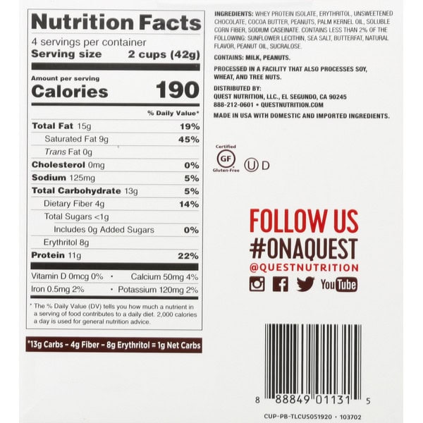 • FIBER IS YOUR FRIEND: Quest Peanut butter cups have 4g of fiber per serving to provide your body with a satiating boost of fiber.