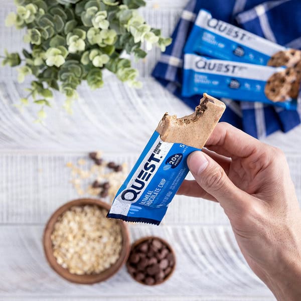 • SWEET WITHOUT ADDED SUGAR: Enjoy the rewarding taste of an oatmeal chocolate chip cookie without worrying about added sugars. The Quest Oatmeal Chocolate Chip Protein Bar has no added sugars.