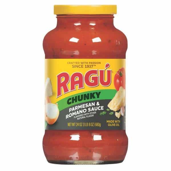 Taste the traditional flavor of RagĂº Old World Style Parmesan & Romano Pasta Sauce. It’s Nonna approved! Classically crafted with vine-ripened tomatoes and Italian spices, our smooth Old World Style spaghetti sauce has the rich, familiar flavor you’re looking for. Combines farm-grown tomatoes and herbs and spices for a well-rounded taste. A great option for family dinner, RagĂº Old World tomato sauce is made from an authentic recipe with high quality ingredients. A Nonna approved sauce that began in an Italian mother’s kitchen that has traditional Italian flavor. The savory red sauce can be mixed with penne, used to make stuffed shells with ricotta cheese, added to pasta primavera for a tasty dinner you and the kids will enjoy, or used in a crockpot to make an Italian-style pot-roast. Since 1937, RagĂº has made Italian pasta sauces inspired by an Italian mother’s recipes for a familiar taste that feels like home. To maintain freshness, refrigerate this 24 oz. jar of tomato pasta sauce after opening.