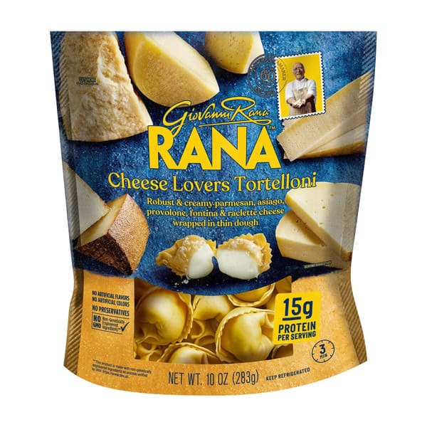 Giovanni Rana’s Cheese Lovers Tortelloni is made with ricotta, mascarpone Parmigiano Reggiano mozzarella and Pecorino Romano wrapped in thin pasta. Using high quality ingredients and no preservatives, no powdered eggs, no gums, no hydrogenated fats, and no artificial flavors or colors Giovanni Rana’s pasta makes a wonderful choice for meals. Preparing our tortelloni in three easy steps: