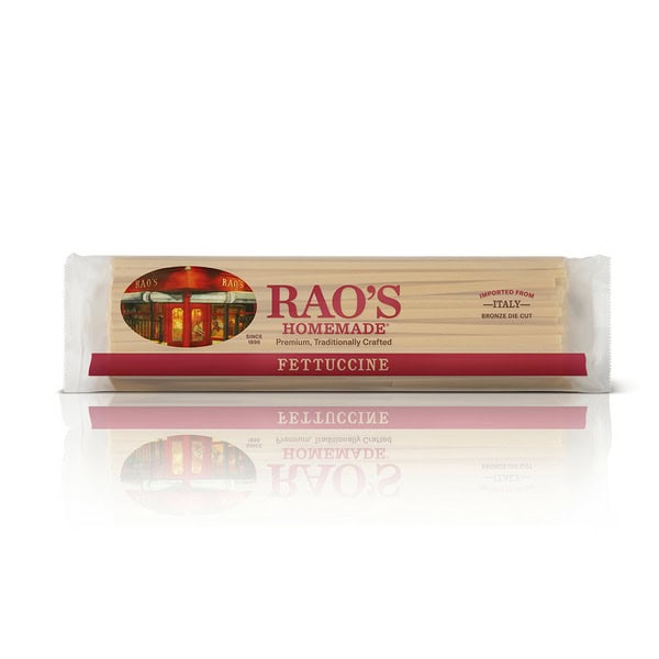 Bring home the famous taste of Raos Homemade pastas! Our delicious Fettuccine is imported from Italy to bring the flavor of Italy right to your table. Our pasta is made from house-milled durum semolina flour dried slow and low for delicious flavor and the perfect al dente texture. Our Fettuccine is a long, flat pasta originated in Italy and most commonly found in Roman and Tuscan cuisine. It pairs well with Alfredo sauce for the perfect Fettuccine Alfredo. Delicious speaks for itself!