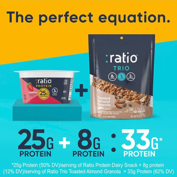• CONTAINS: One 1 lb 5.2 oz multi-pack of :ratio Protein Strawberry Flavored Yogurt Cultured Dairy Snack; 4 single-serve cups
