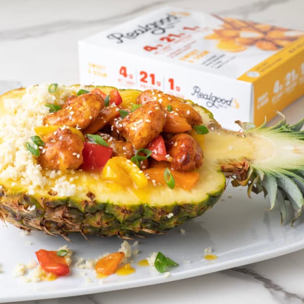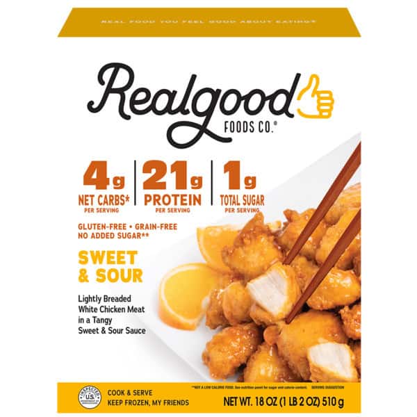 Low Carb, keto-friendly Sweet & Sour Chicken! Sweetened with Erythritol and Monk Fruit instead of Cane Sugar which has minimal impact on blood sugar! Only 160 calories per serving! 4g Net Carbs, 1g Sugar, 21g of Protein, and made with no Gluten or Grains. Perfect paired with a veggie for a full meal or eaten by itself!