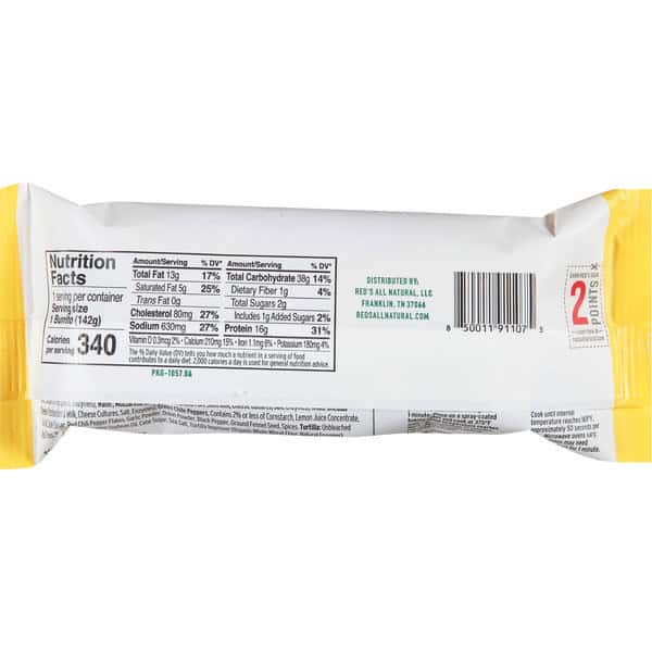 Not all plant-based protein is created equal, but Red’s plant-based sausage has a rich, satisfying taste and texture that even the biggest meat lovers will devour. This frozen breakfast burrito packs a flavorful punch, with smoky plant-based sausage, plus fluffy eggs and a blend of white cheddar, pepper jack and mozzarella cheese. The perfect meatless option for flexitarians who still crave real eggs, real cheese — and real variety. Red’s makes it easy and convenient for you to fuel your day with delicious, clean label food that helps you keep moving.