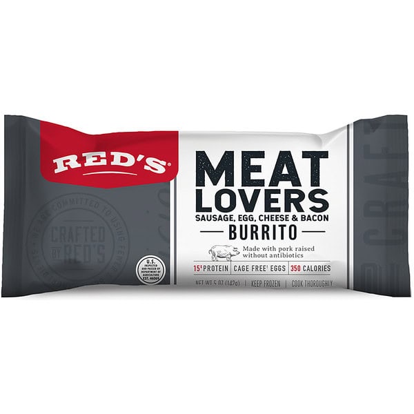 Red’s individually wrapped Meat Lovers breakfast burrito is a game changer. Chock-full of bacon and pork sausage, it’s crafted with delicious, scrambled eggs and a blend of white cheddar, pepper jack and mozzarella cheese. One burrito, all the best flavors. This frozen breakfast burrito is packed with 15g of protein and is made with no artificial flavors, colors or preservatives. Red’s makes it easy and convenient for you to fuel your day with delicious, high quality food that helps you keep moving. Simply pop a Red’s breakfast burrito in the air fryer (or microwave) and enjoy!