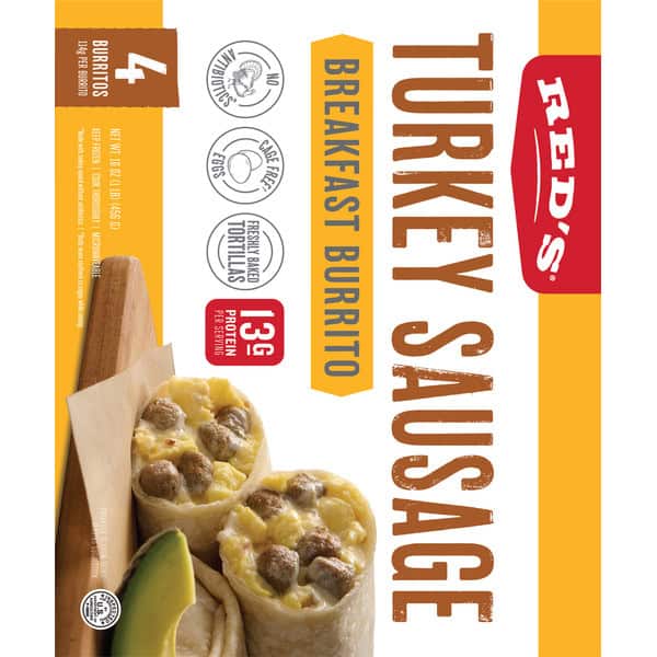 No antibiotics (Made with turkey raised without antibiotics). Made with cage free eggs (Birds never confined to cages when raising). Microwaveable. The Red’s Story: After enjoying one of my wife Paige’s delicious burrito recipes, Red (our loyal and trusted dog) and I agreed that we had to start a burrito company. Years later we are more obsessed than ever with the craft or burrito making. Our job is to deliver an amazing experience and anything less is unacceptable. I hope you enjoy. – Mike. Mike & Red. Stuffed with the good stuff. FSC: Mix – Packaging from responsible sources. www.fsc.org.