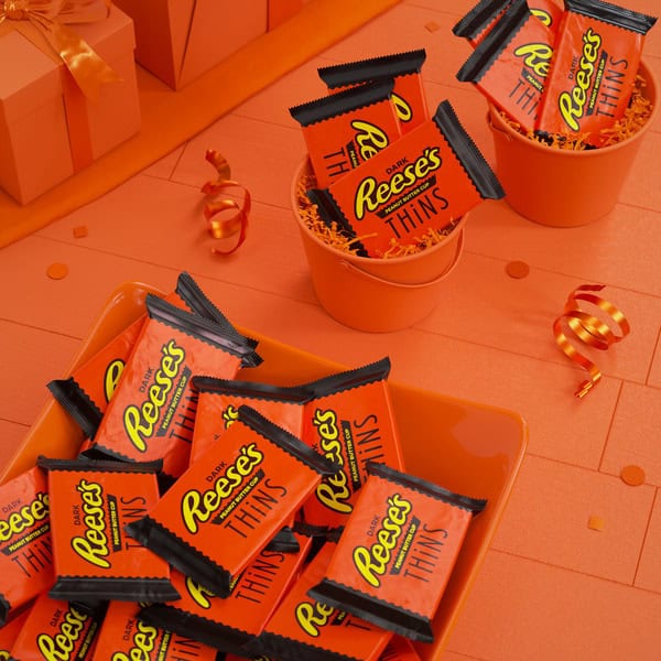 No, your eyes aren’t playing tricks on you: REESE’S THiNS candy really is that thin! Indulge in the sweet combination of dark chocolate and peanut butter with these deliciously proportioned candies. REESE’S THiNS dark chocolate peanut butter cups are perfectly sized for sharing and snacking. Keep this bag on hand for a bite of something sweet if you need an afternoon pick-me-up or want an easy, on-the-go snack. Ready to kick your movie night up a notch? Share a bag of these individually wrapped candies to keep everyone happily snacking throughout the film. Keep your office breakroom, home candy bowls and kitchen pantry stocked with delectable kosher certified treats featuring smooth dark chocolate and sweet peanut butter. Whether you need a Christmas stocking stuffer, Halloween trick-or-treat candy, Easter basket filler, Valentine’s Day present or a sweet peanut butter treat to help you unwind, REESE’S THiNS peanut butter cups candies have you covered. Even your best baked goods will stand out with these thin peanut butter cups. Make mini ice cream sandwiches, bake them inside your favorite cookie dough or put them in the freezer for a refreshing snack. Share them friends and family, just don’t forget to save a few for yourself!