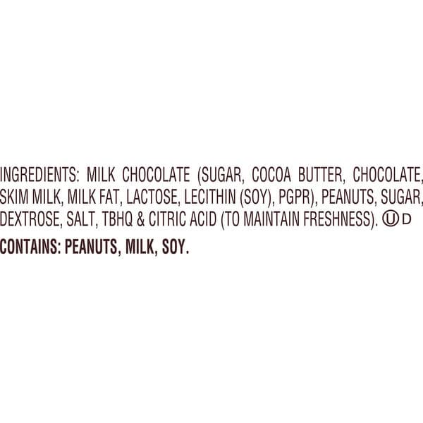 Milk Chocolate (sugar, Cocoa Butter, Chocolate Skim Milk, Milk Fat, Lactose, Lecithin (soy), Pgpr), Peanuts, Sugar Dextrose, Salt, Tbhq & Citric Acid (to Maintain Freshness). Ud