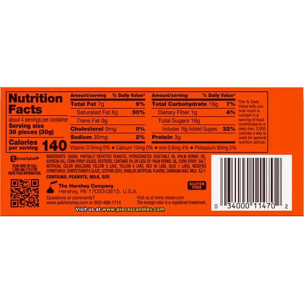 • Contains one (1) 4-ounce box of REESE’S PIECES Peanut Butter Candy