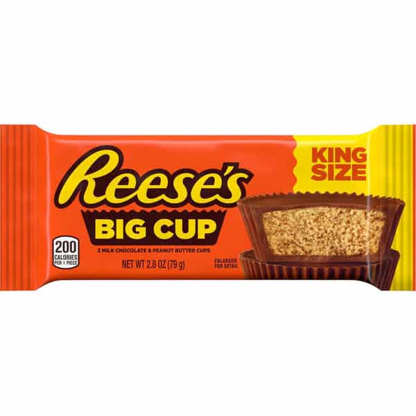 Name a more iconic duo. Everyone will wait… You can’t beat the old-fashioned, match made in heaven when it comes to creamy milk chocolate combined with delicious peanut butter. Get ready to taste perfection! REESE’S milk chocolate peanut butter king-size cups are your go-to snack. Bring a few packs along to the next sporting event, party, movie marathon, game night and so many other activities for an extra bite of peanut butter goodness. Watch the fun multiply as the treats disappear! Store them in your pantry to slip into lunch boxes and purses for a midday surprise. These peanut butter cups candies are a sweet delight that you can bite, break, dunk or nibble on. Yes! Dunk them into a cold glass of milk, a cup of hot chocolate or in your coffee to experience the melty goodness. Put a unique twist on cookies, cupcakes and ice cream decadents with whole, halved or broken REESE’S cups sweets. They are a gluten-free kosher product that goes well with almost everything, especially during your holiday celebrations. Add them Christmas stockings, Halloween candy bowls, Valentine’s Day gift bags and Easter baskets.