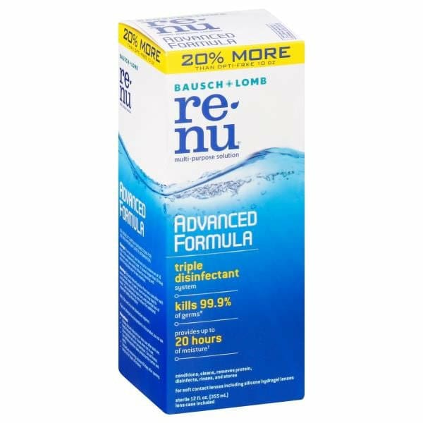 Look forward to exceptional cleaning, disinfection, conditioning, and care for your contact lenses with Renu multi-purpose contact lens solution. From the Eye Care Experts at Bausch + Lomb, Renu contact lens solution offers everyday value and is designed to be gentle on the eyes. It conditions and hydrates lenses for all day comfort, allowing your lenses to feel fresh at the end of the day. Renu Advanced Formula contact lens solution provides up to 20 hours of moisture (based on a laboratory study), helping to prevent lens dryness. Renu lens solution provides excellent cleaning, helping prevent deposits for clean, clear lenses when used daily. The multi-purpose contact solution leverages 3 disinfectants for outstanding disinfection. In fact, nothing disinfects better [vs. multi-purpose solutions based on standardized testing (ISO 14729) against five common organisms]. Renu solution makes contact lens care easy – simply rub and rinse your contact lenses and store them in the case for at least 4 hours until you are ready to wear them again.
