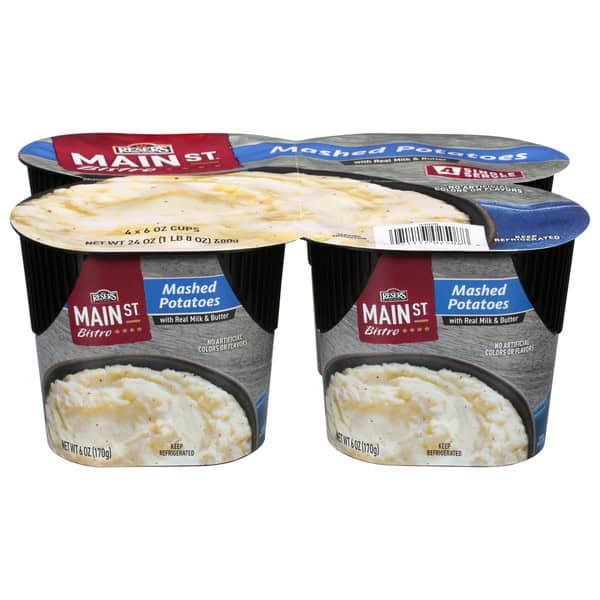 Make dinner or snacking memorable with the made-from-scratch taste of Main St Bistro Mashed Potatoes single serves. This delicious side dish is ready in minutes so it pairs quickly and easily with your favorite entree. Our signature mashed potato recipe is made with fresh potatoes, real milk, butter, and black pepper for a rich restaurant quality taste. Packed into four portable easy-to-grip single serve microwave safe cups to enjoy as a ready-made lunch at home, in the office, or any time.