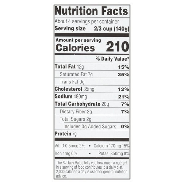 Heating Instructions: Microwave: 1. Remove tray from package and remove film. 2. Heat on high for 4 minutes or until hot. 3. Let stand for 1 minute before serving. Microwaves vary, adjust heat times as needed. Caution: Product and container will be hot. Oven: 1. Preheat oven to 350 degrees F. 2. Remove tray from package and remove film. 3. Place container on baking tray and heat in oven for 20-22 minutes or until hot. Caution: Product and tray will be hot. Do not prepare in toaster oven. Do not broil.