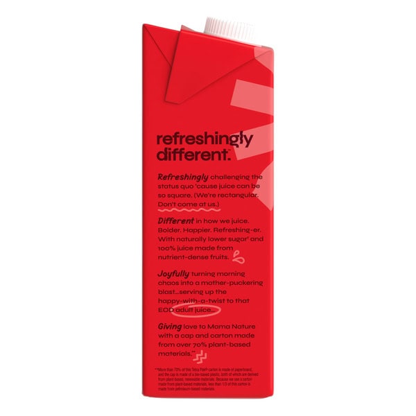 • REFRESHINGLY DIFFERENT™. Real fruit juice. No artificial sweeteners, flavors, colors or GMOs