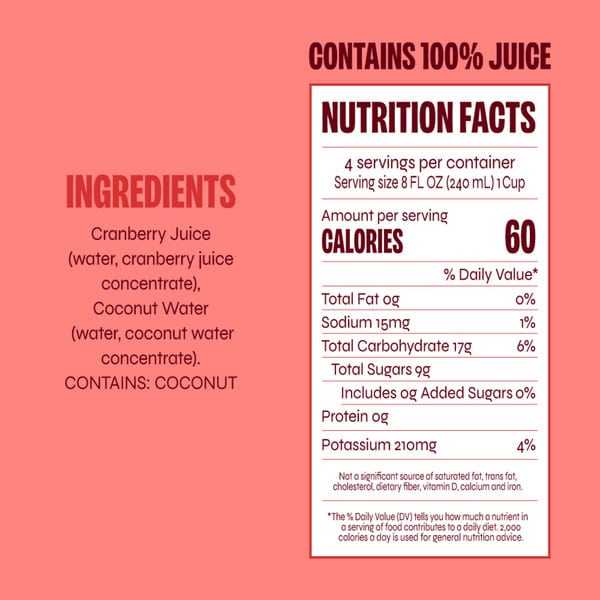 Cranberry Juice (water, Cranberry Juice Concentrate), Coconut Water (water, Coconut Water Concentrate), Natural Flavor