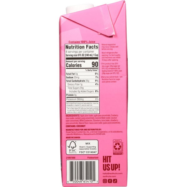 Apple Juice (water, Apple Juice Concentrate), Cranberry Juice (water, Cranberry Juice Concentrate), Coconut Water (water, Coconut Water Concentrate), Milled Cranberries, Strawberry Juice (water, Strawberry Juice Concentrate), Natural Flavor, Guava Juice (water, Guava Juice Concentrate).