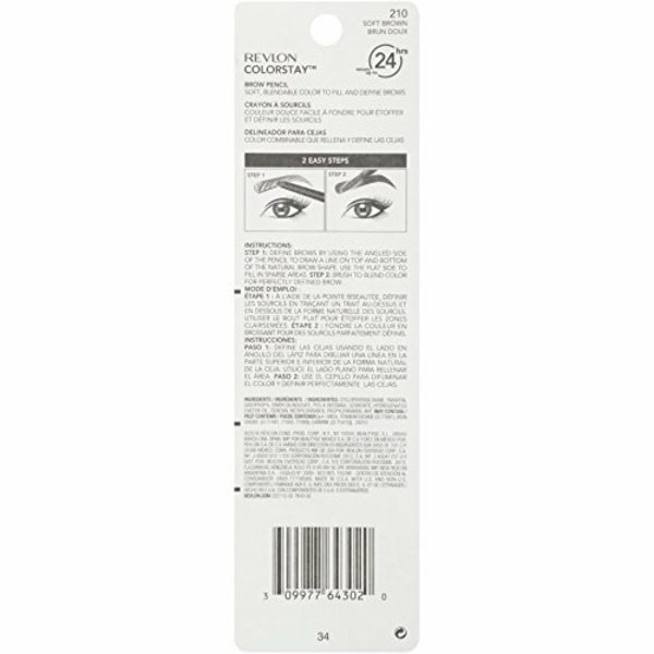 Wears up to 24 hrs. Angled tip. Blending brush. Soft, blendable color to fill and define brows. Revlon.com. Made in USA with US and non-US components.