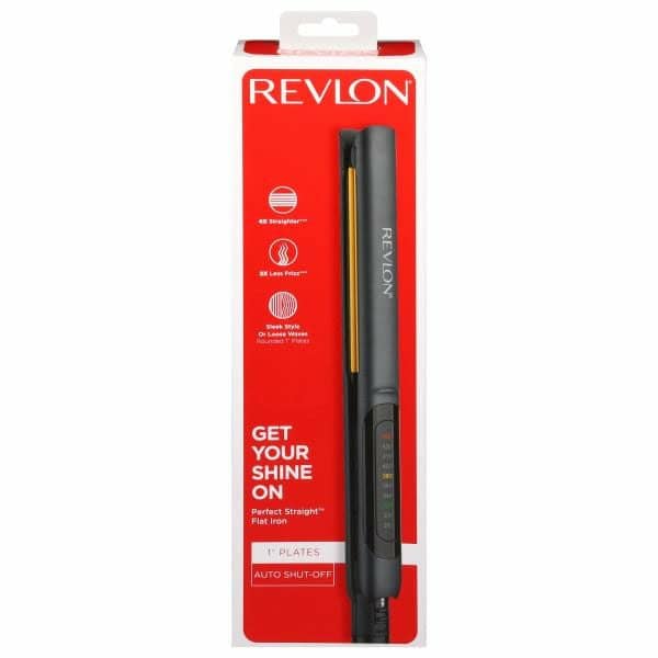 Model RVST2142. 1 inch plates for smooth, frizz-free styles. 430 degrees F high heat for faster styling. 3X ceramic coating for less damage. 30-second heat-up. 30 heat settings for all hair types. True-grip plates for a smooth glide. 1 inch true-grip plates specially designed to eliminate gaps for a smooth easy glide. 430 degrees F high heat for faster styling and optimal results. 30 heat settings – precise control for all hair types. Chrome finish. Tangle-free swivel cord for easy styling. 30-second heat-up. 3-year limited warranty. 3X Ceramic Coating: Three layers of ceramic coating protect hair from over-styling with even heat distribution that penetrates hair quickly and styles from the inside out for less damage. Facebook for styling tips: facebook.com/revlonhairtools. www.revlonhairtools.com. 430 degrees F high heat for faster styling and optimal results. www.revlonhairtools.com. For product information, visit us at www.revlon.com. The product you buy may differ slightly from the one shown on this carton due to continuing product improvements. ETL listed – Intertek. Made in China.
