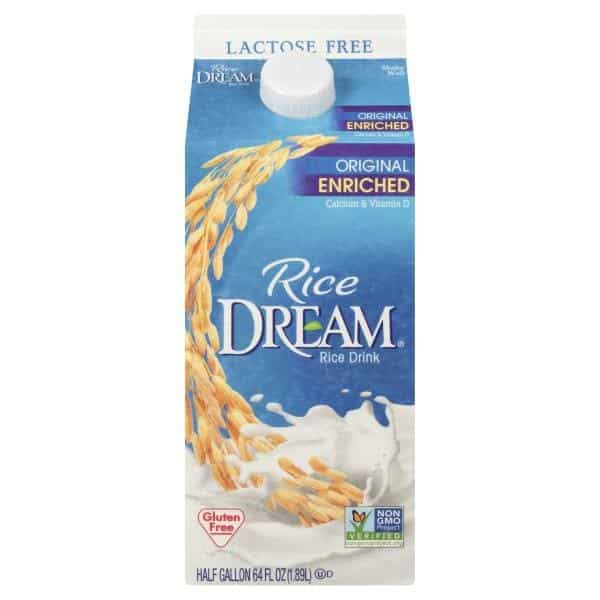 Easy to digest. Lactose free. Calcium & vitamin D. Non GMO Project verified. nongmoproject.org. Gluten free. Certified vegan. vegan.org. Benefits: Lactose free and dairy free; Excellent source of calcium and vitamin D; With vitamins A and B12; Non-GMO Project verified; Easy to digest; 99% fat free; Soy free; Cholesterol free food; Gluten free; Kosher; Vegan. A whole new way to dream. Non-dairy drinkers, reach confidently for delicious, Rice Dream Enriched Original Rice Drink. It’s full of refreshment and nutrition while being dairy free, soy free, and low in fat. It pours on the flavor without cholesterol, but with plenty of calcium and vitamin D. So you can Dream all you want – about cereal, smoothies, recipes, or just a cold, satisfying glassful. Finally, news that’s easy, very easy to digest! Dream for a better planet. Rice Dream Enriched Original Rice Drink uses only high quality brown rice. Feed the Planet: Rice can be indefinitely cropped in irrigated fields. Some rice fields have been continuously cultivated for over 2,000 years. For more information on the Dream family of products and for delicious ideas, please visit our website at www.TasteTheDream.com. Questions or comments? Call 800-434-4246. Recyclable only where facilities exist. Visit recyclecartons.com to see if recyclable in your area.